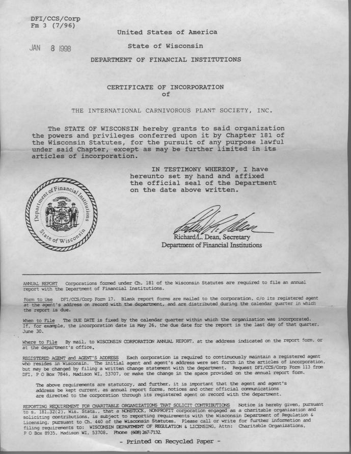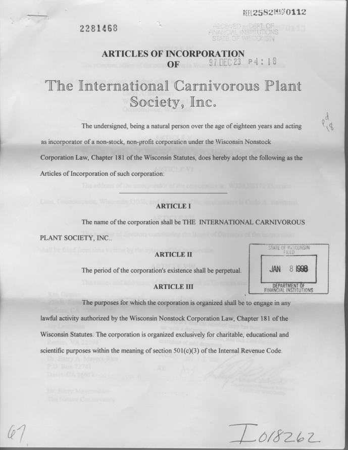 THE INTERNATIONAL CARNIVOROUS PLANT SOCIETY, INC.